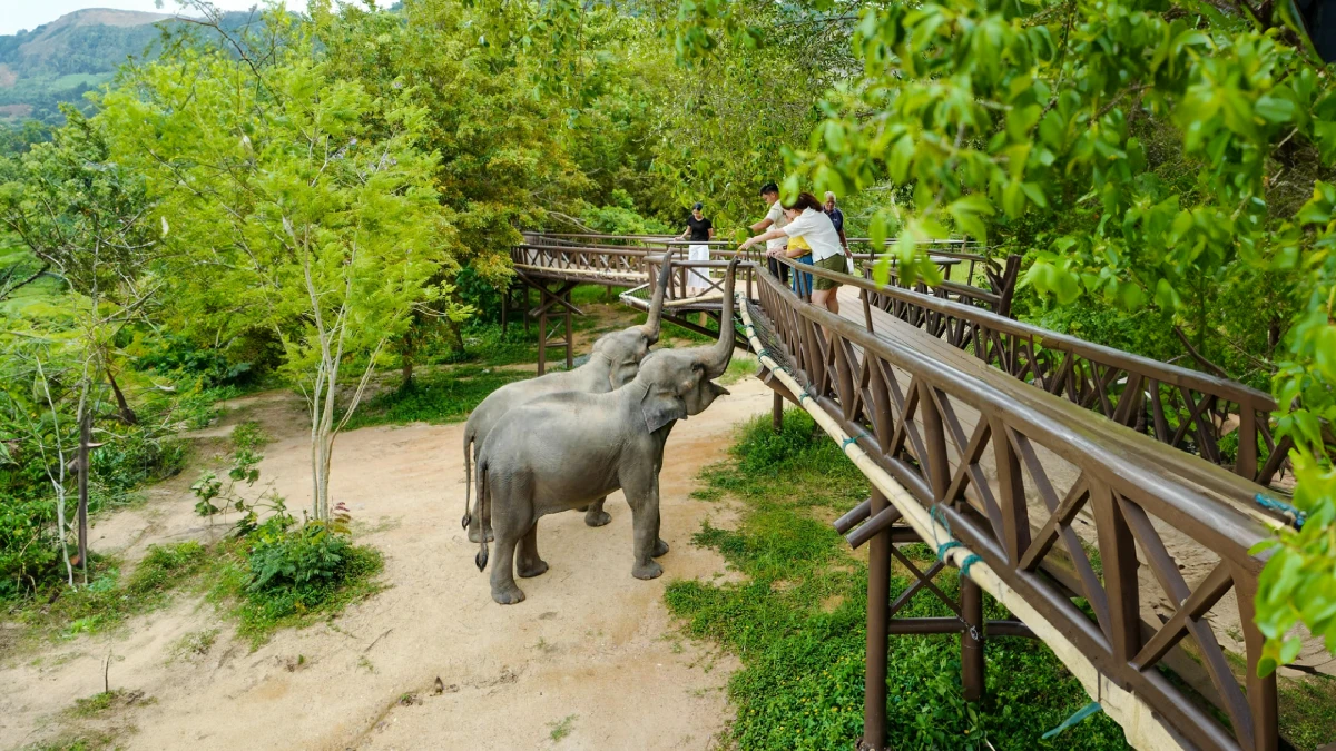 Then, offer the elephants a “basket of love” filled with fruits while walking the 400-meter-long Skywalk — a unique opportunity to observe these gentle giants in their natural behavior from above.