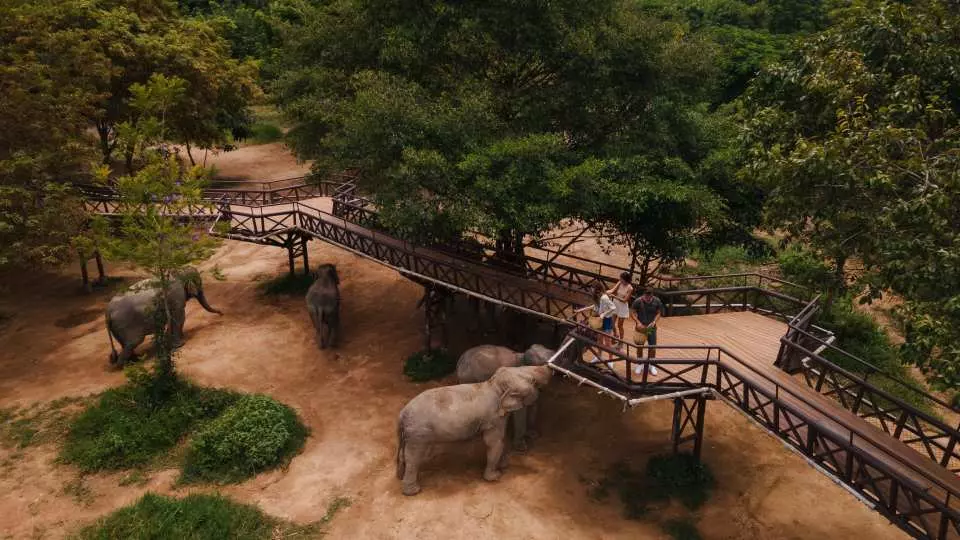 Walk on a 400-meter skywalk to observe elephants freely roaming below